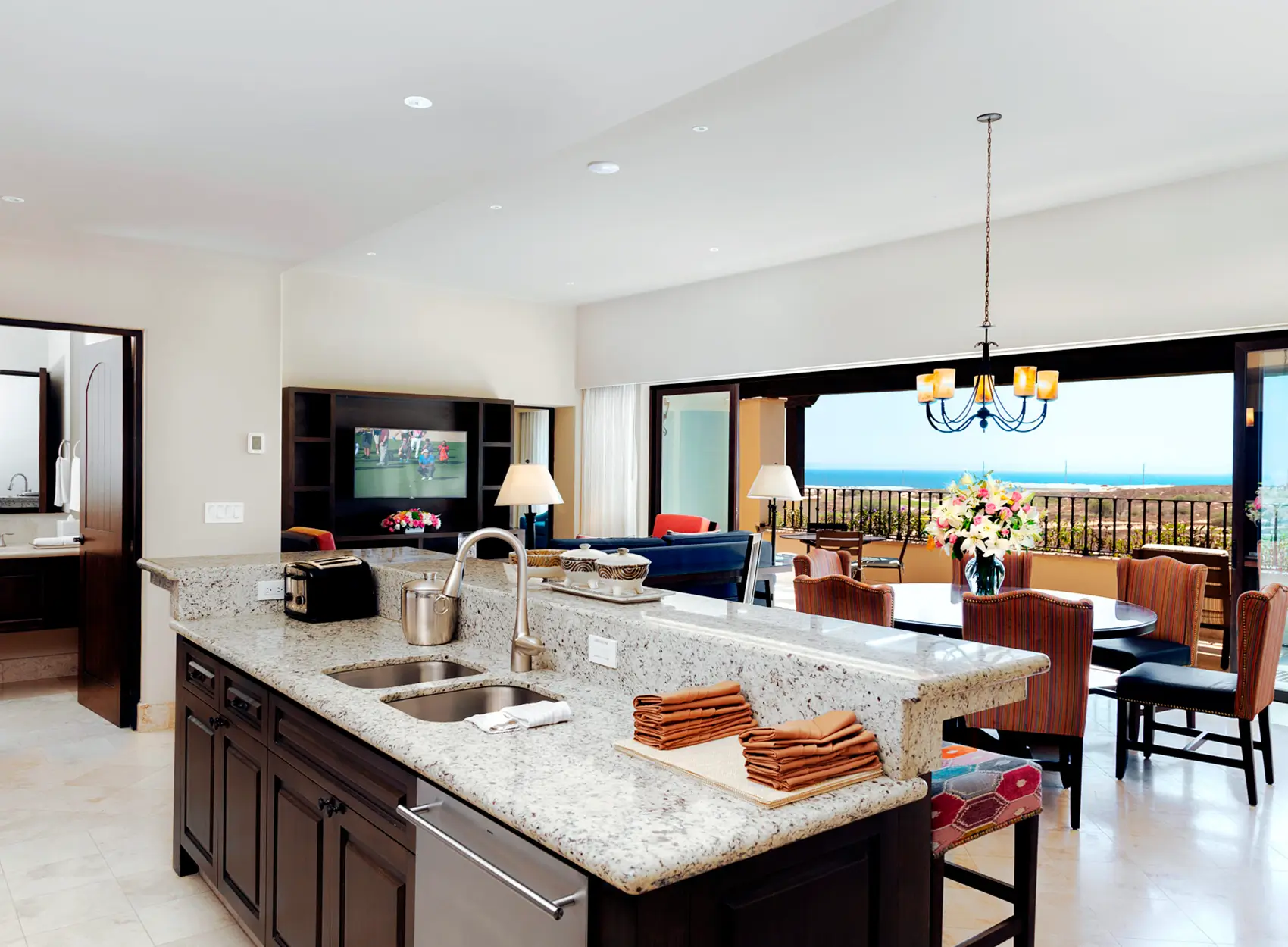 Relax in the Ocean Club Residence Restaurant adjacent to the main pool. The menu features an upscale lunch offering, poolside snacks and a bright cocktail lineup.